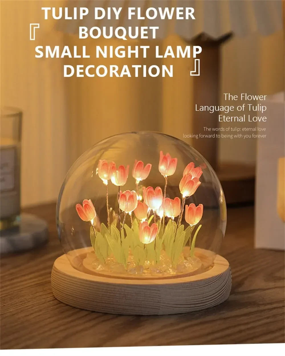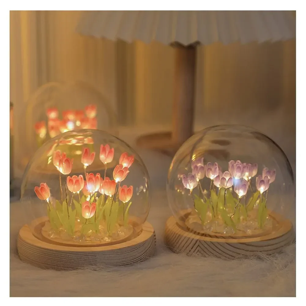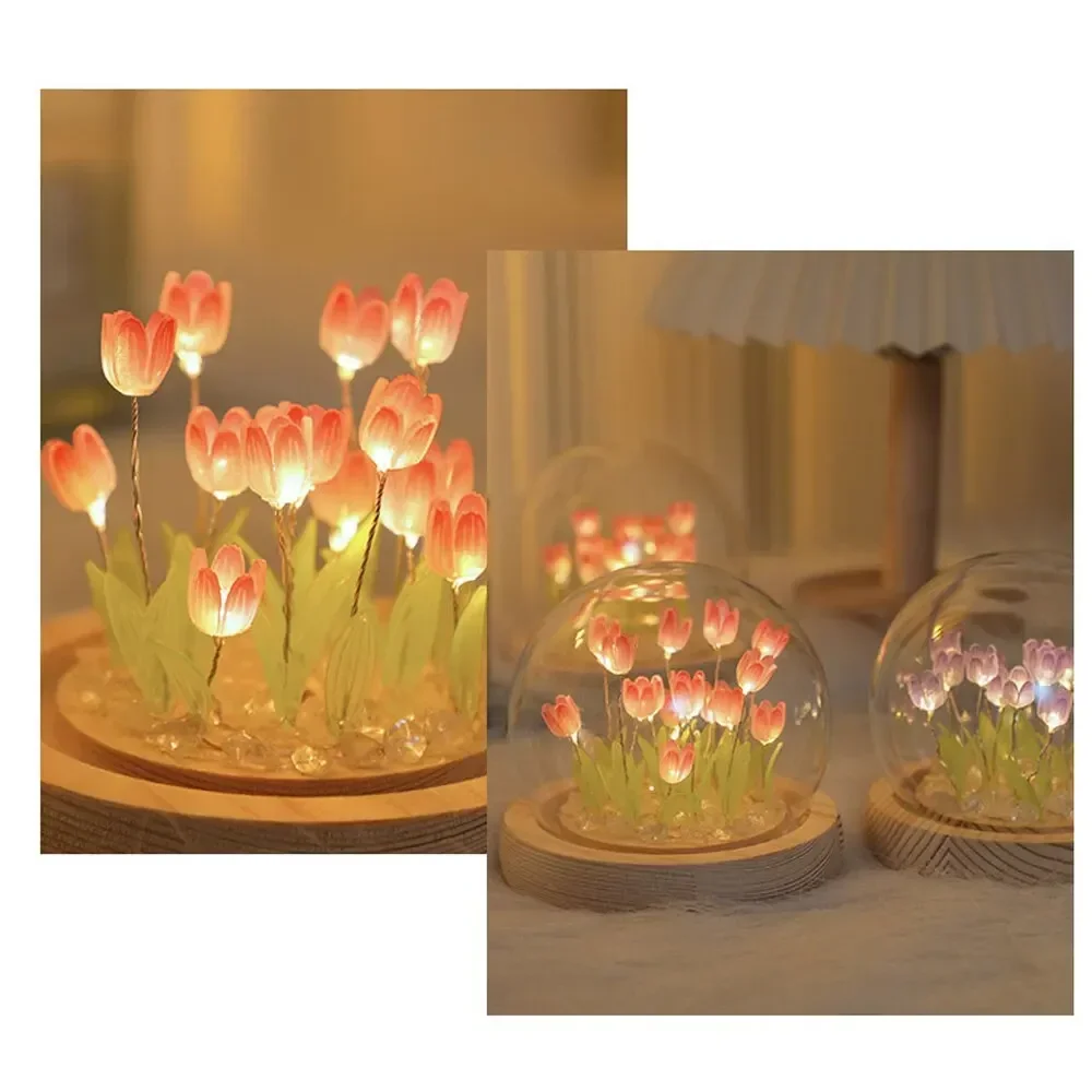 Artificial Tulip Flower Night Light Handmade DIY Bedside Lamp LED Night Lamp Bedroom Decor Christmas Birthday Gifts Table Lamp